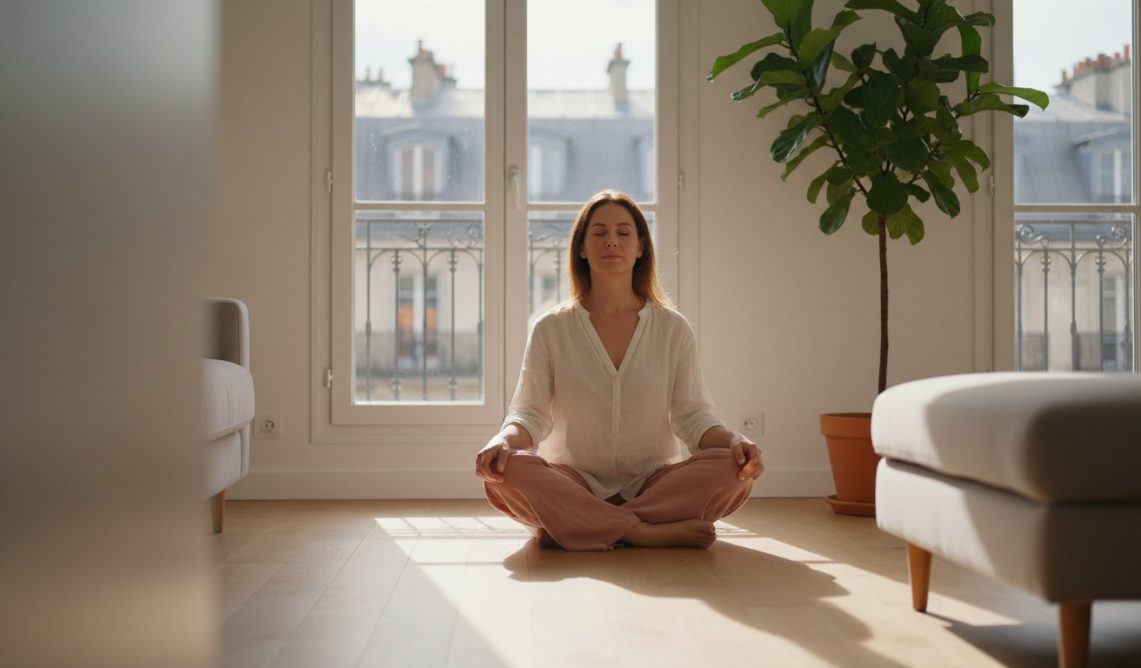 - Pratiquer 3 minutes de respiration consciente : Asseyez-vous, fermez les yeux et concentrez-vous uniquement sur votre souffle. Inspirez profondément, expirez lentement.